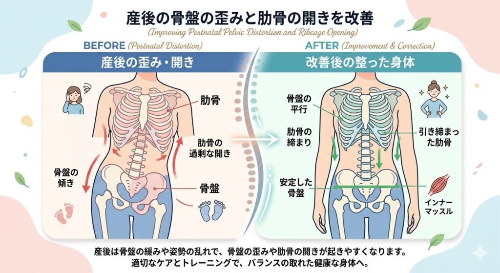 産後の骨盤の歪みや肋骨の開きを改善