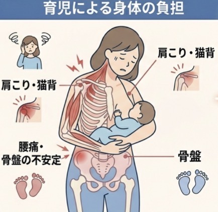 これにより、多くのママが激しい肩こりや腰痛に悩まされています。